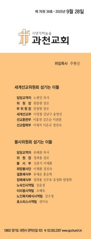 온라인 헌금 우리은행 1005-701-113642(대한예수교장로회과천교회) 표기방법: 이름 헌금종류 생년월(예: 주찬미 십일 6208)