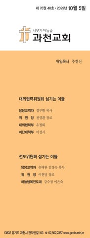 ⑧ 신천지와 하나님의교회 이단사이비세력으로부터 가정과 마을을 지켜주시고, 과천의 교회들을 악한 세력의 준동에 흔들리지 않는 견실한 신앙공동체로 세워 주옵소서.