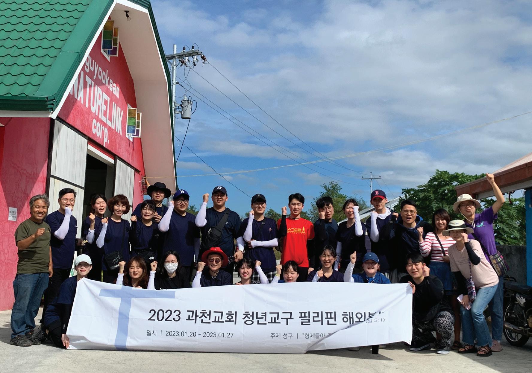 Contents 2023년 3월-4월│Vol. 141 COVER STORY 사순절 4 주일설교│주현신 위임목사 묵상나눔 34 교구별 큐티나눔 들여다보기│송수현 · 전승학 외 인사나눔 38 하늘행복 Re-start│조성아 교회소식 42 지나간 소식 / 다가올 소식│편집부 해외봉사 28 청년부 필리핀 해외봉사│이어진 · 최정인 선교지소식 32 지금 여기에서 땅끝까지 선교하기│임재량 · 김무용 은퇴인사 24 은퇴권사 축복을 감사하며│이화영 22 과천교회 여성 장로님이시죠?│이옥단 26 Re-tire│김보한 기획 8 이맘때쯤 생각나는 말씀│심소라 해마다 이맘때쯤 10 이맘때쯤 생각나는 그림│변창희 14 이맘때쯤 생각나는 음악│류형선 16 이맘때쯤 그려보는 그림에세이│여수빈 18 이맘때쯤 돌아오는 과천교회창립주일│최진영