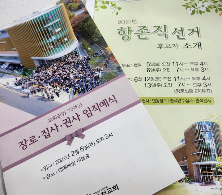 (주)에는 1차 투표 결과 다득표자 순서로 선별된 후보를 대상으로 2차 투표를 하게 된다. 최종 선 출된 후보자는 총회와 교회의 직분자 훈련 과정 을 거친 후 내년 2월 교회창립 76주년 기념주일 에 임직식을 갖는다. 시냇가 하늘숲 과천교회의 미래를 위해 이름없이 빛도 없이 겸손히 섬기며 헌신할 일꾼들이 세워지기를 기도한다.