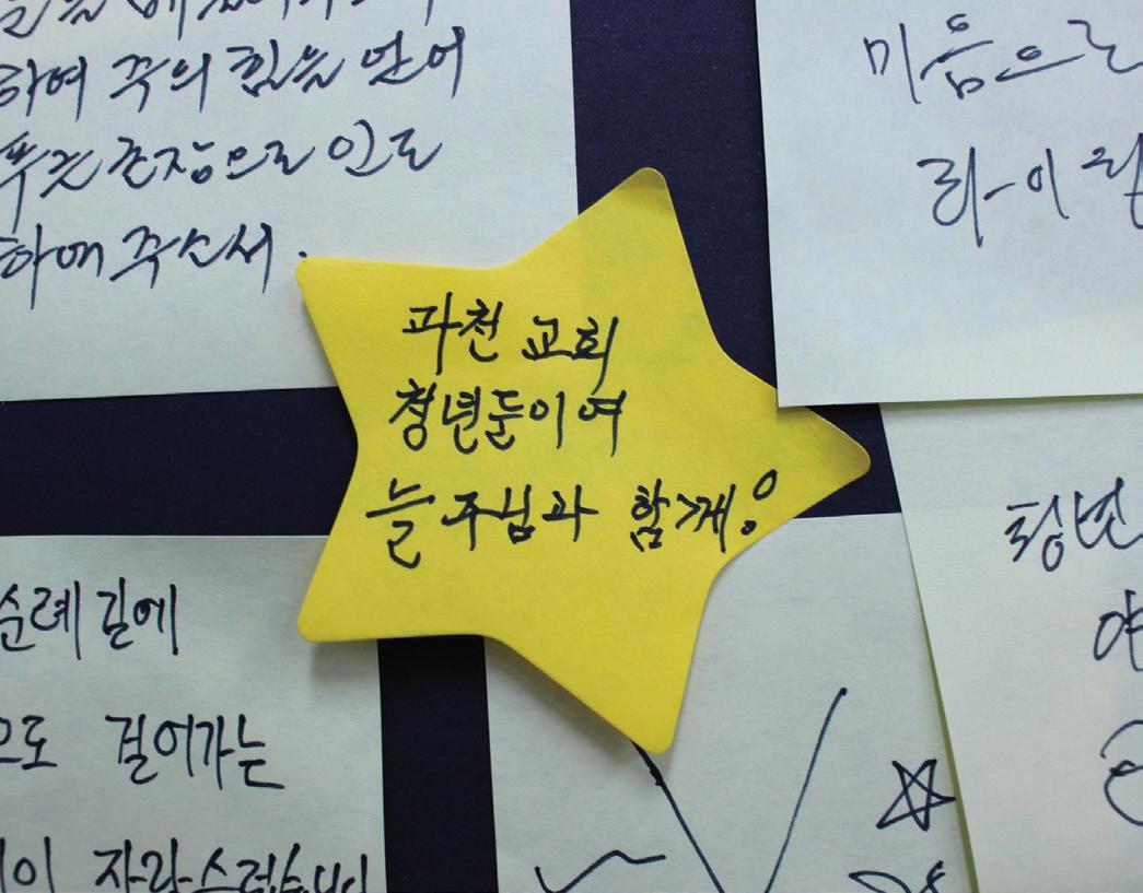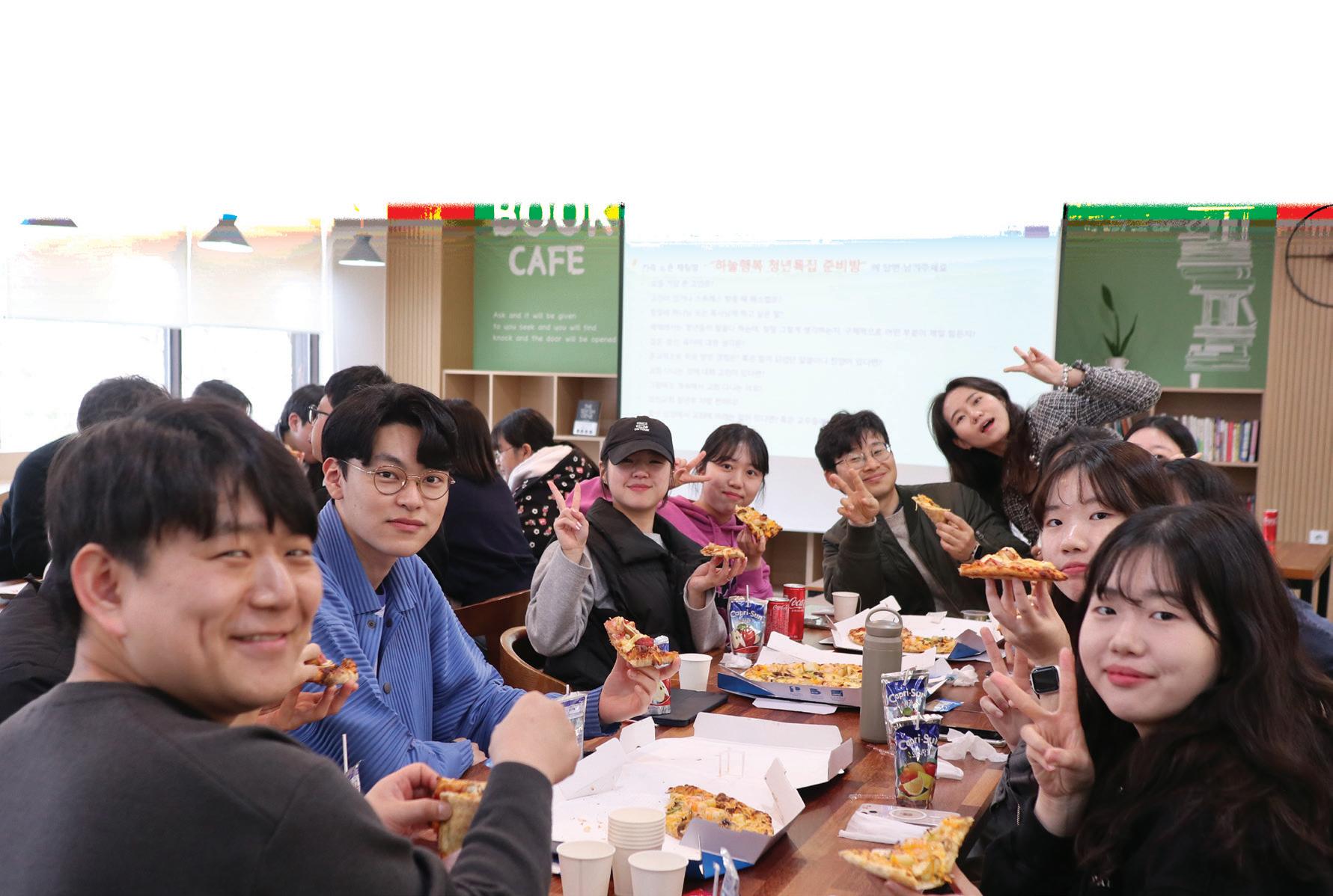기도 시간을 가진 뒤, 청년센터에 모여서 그날 말씀