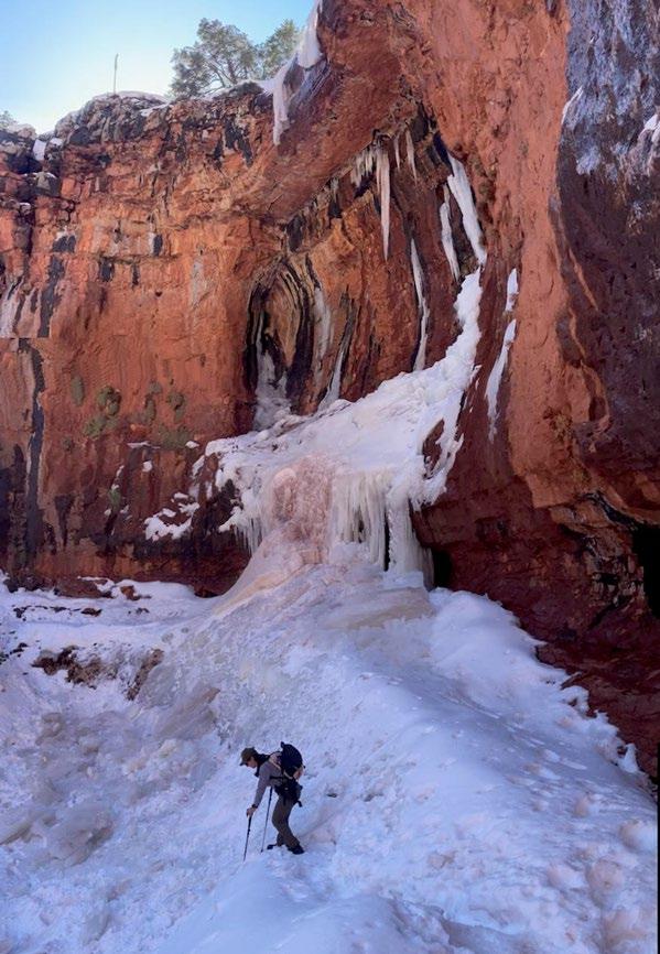 Donations from GCC supporters and the Trails Forever Endowment support the ongoing maintenance and restoration of Grand Canyon’s trails for the enjoyment and safety of visitors. In 2023, trail work occurred throughout the park, including extensive rehabilitation work on the North Kaibab Trail by NPS and conservation corps crews. The winter of 2022–2023 saw record snowfall on the North Rim of Grand Canyon, and the snow melt that ensued coupled with heavy rain led to significant trail destruction in the form of rockfalls, stone retention wall blowouts, and even a collapsed switchback. Portions of the trail were not passable to hikers or stock users. The work on the North Kaibab Trail was only accessible by foot, and the crew often had to hike 16 miles across the canyon from the South Rim to Manzanita and the next day another 3.5 miles one-way up steep grades to get to the job site. In total, 16 blown-out retaining walls were rebuilt, 22 separate rockfalls were cleared, and 170 linear feet of tread surface was rehabilitated.