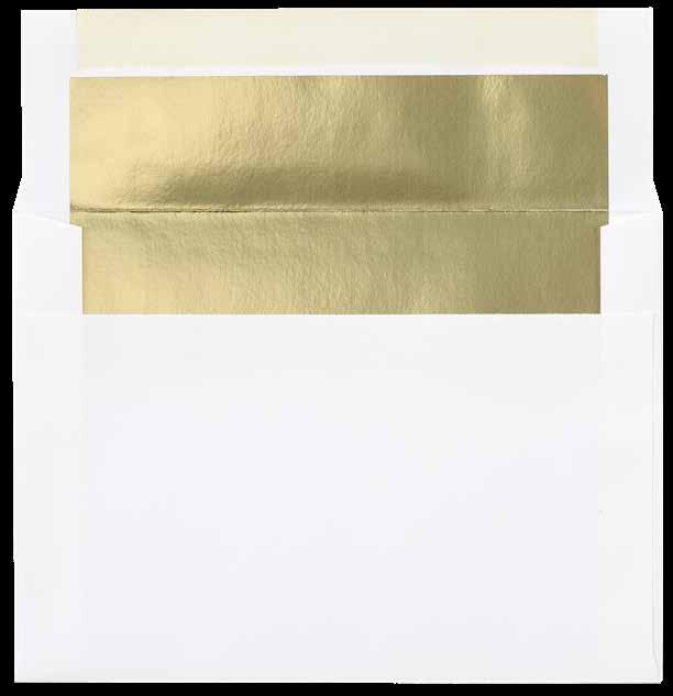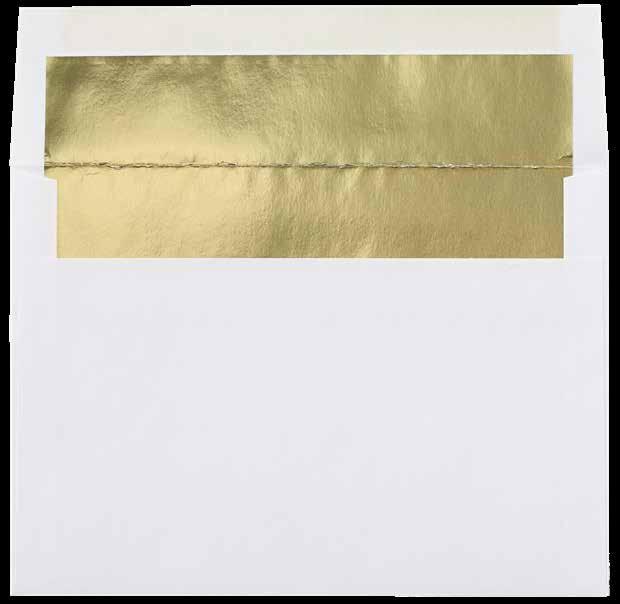 All greetings in this collection include foil lined envelopes. We have chosen a foil color that best coordinates with the card’s design and completes the ensemble beautifully.