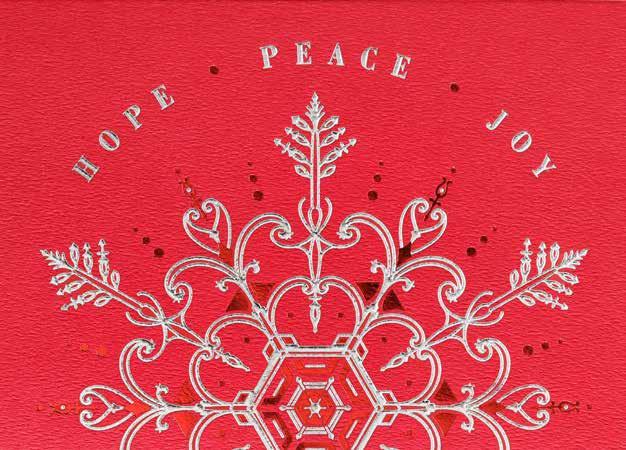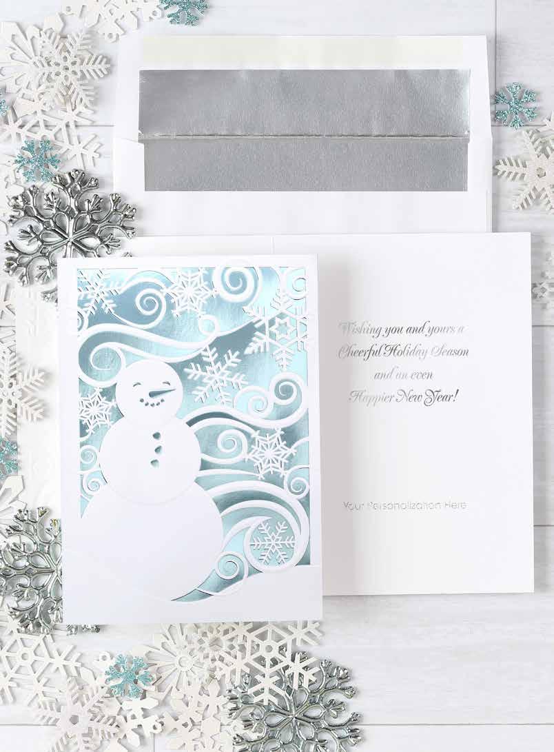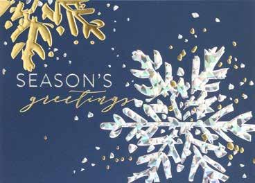 Celebrate the season with classic holiday cards or traditional designs with contemporary twists like sparkling foil accents and clever die- cuts. New for 2023, Surprise Greetings on page 13 pairs a laser-cut snowflake with gold foil stamping and a unique fold for a showstopping layered look.