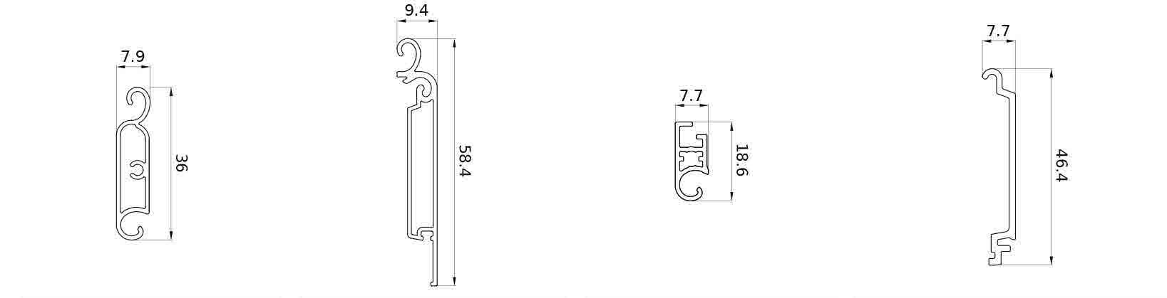 Guida in alluminio A27 Guida in alluminio A28 25,5x30 mm 17x27 mm Ø 185 Ø 225 Ø 205 Ø 250