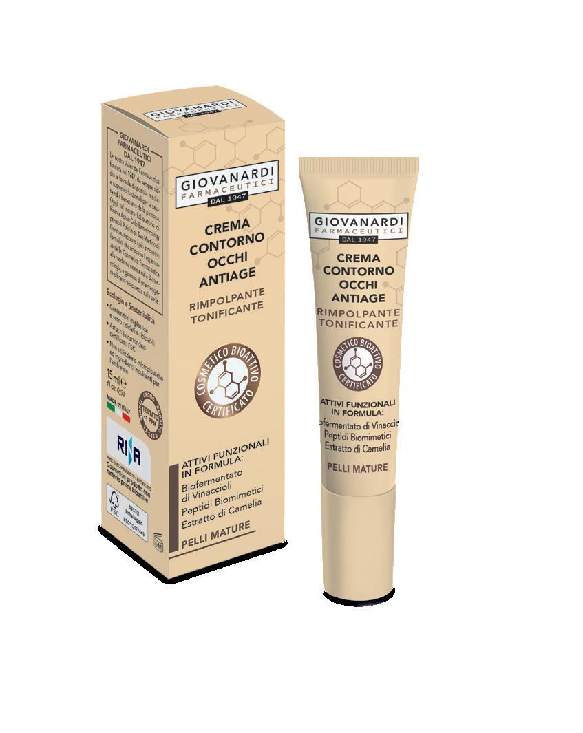 Emulsione dalla texture morbida e setosa, di rapido assorbimento, aiuta a contrastare e ridurre la formazione di rughe e borse, rivitalizzando lo sguardo. Formula potenziata con il Biofermentato di Vinaccioli, che stimola il microcircolo capillare, donando un evidente effetto tensore; arricchita inoltre con Peptidi biomimetici, i quali favoriscono la produzione di collagene ed elastina, levigando rughe, linee sottili e profonde ed Estratto di Camelia, dalle proprietà idratanti ed anti-ageing.