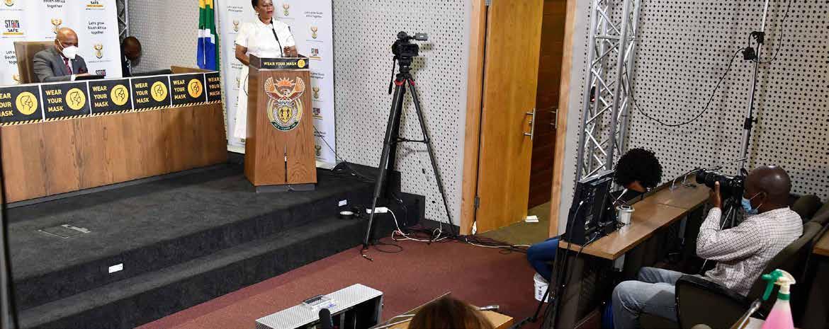 briefings daily at its Head Office in Preto ria, to update the nation. Journalists were able to participate virtually in the brief ings that were broadcast across various platforms. Our partnership with the SABC saw the broadcaster assisting with studio space, broadcast equipment and a pool feed to enable anyone across the globe to have access to the government brief ings. Our communication thrust was con