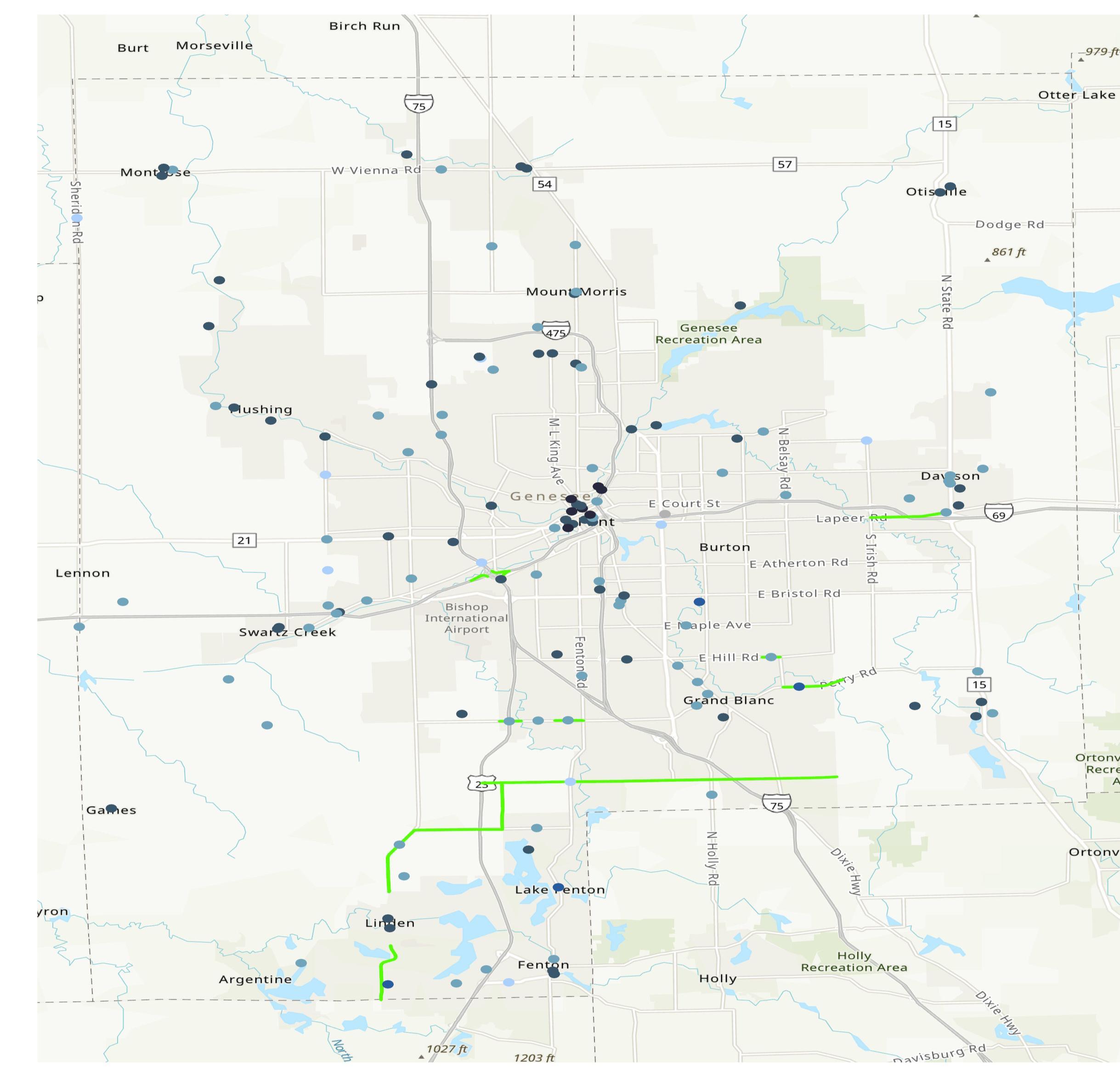 In 2023, Genesee County conducted a comprehensive assessment of its communities and neighborhoods to better understand quality of life across the region. As part of a county-wide housing survey, staff found that over 83% of neighborhoods either lacked sidewalk infrastructure entirely or had sidewalks in need of repair. This lack of pedestrian infrastructure forces many residents to walk along roadways, increasing safety concerns. Between 2017 and 2023, there were 537 pedestrian-involved traffic accidents resulting in injury or death, according to the Michigan State Police.