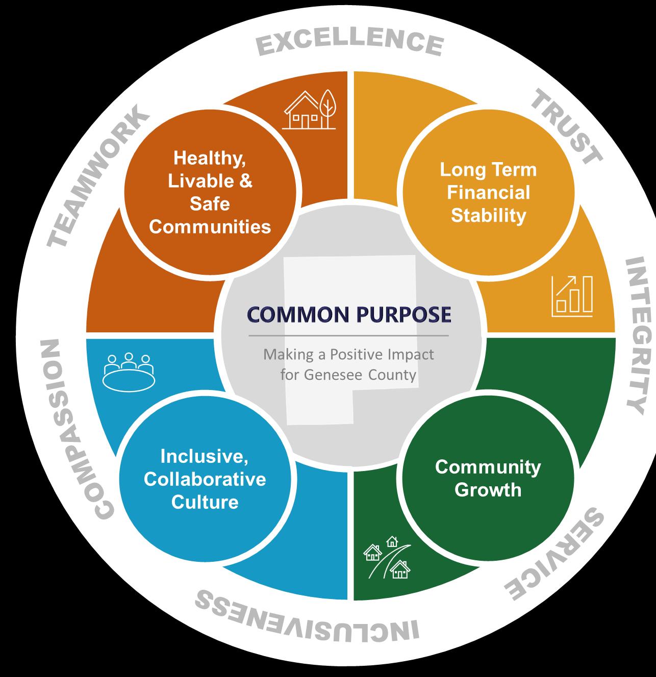 Genesee: Our County, Our Future is a Master Plan for Genesee County residents, government, elected officials, and business owners that provides information and analysis on the current and future state of the County. In 2023, Genesee County established a set of core priorities that have since guided countywide activities and initiatives. These priorities also serve as the foundation for developing the Countywide Master Plan.