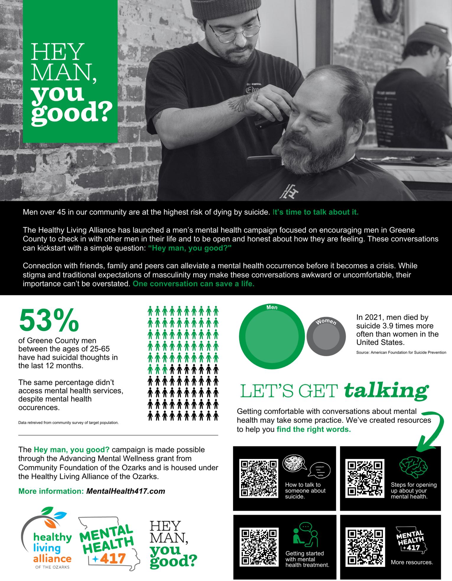 Director Dr. Nancy Yoon’s article in this issue urges men to reach out to their male friends (Hey man, you good?) in an effort to decrease increasing male suicides in our community.