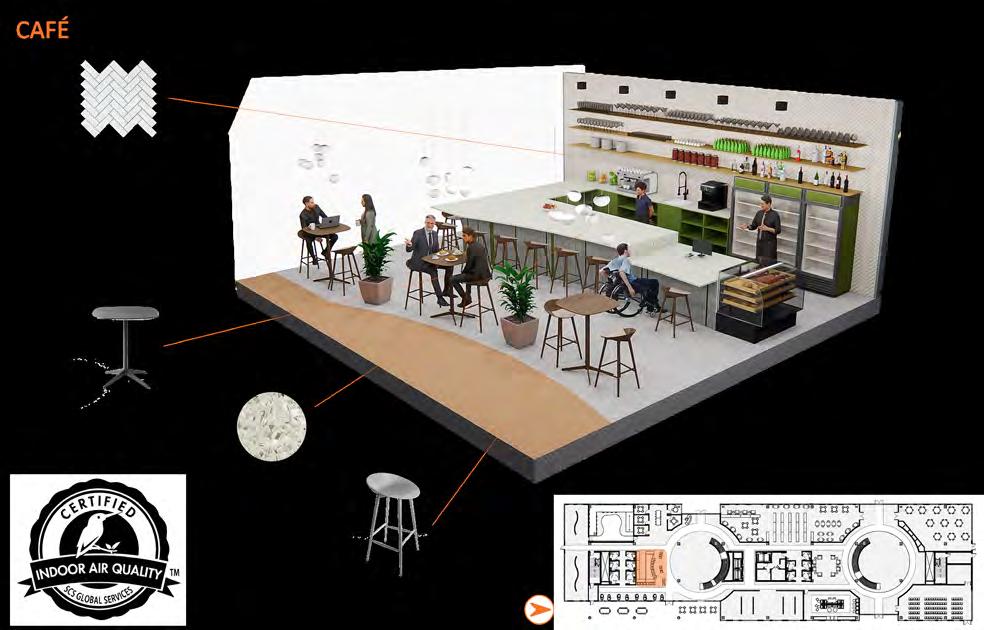 The design strategies applied for the center encompass a framework of stability (support for change), dynamic elements – which activate the space throughtheir adaptability and flexibility, sustainable and healthy materials – which contribute to overallwellbeing. The call to action arises from the vibrant color palette, which evokes feelings of optimism and energy withthepredominant use of orange. This color isan attention-grabbing warm color that conveys a message of positivity. The programming offers opportunities for public exploration, involvementand support, connection and collaboration to inspire change and celebrate the essence of change.