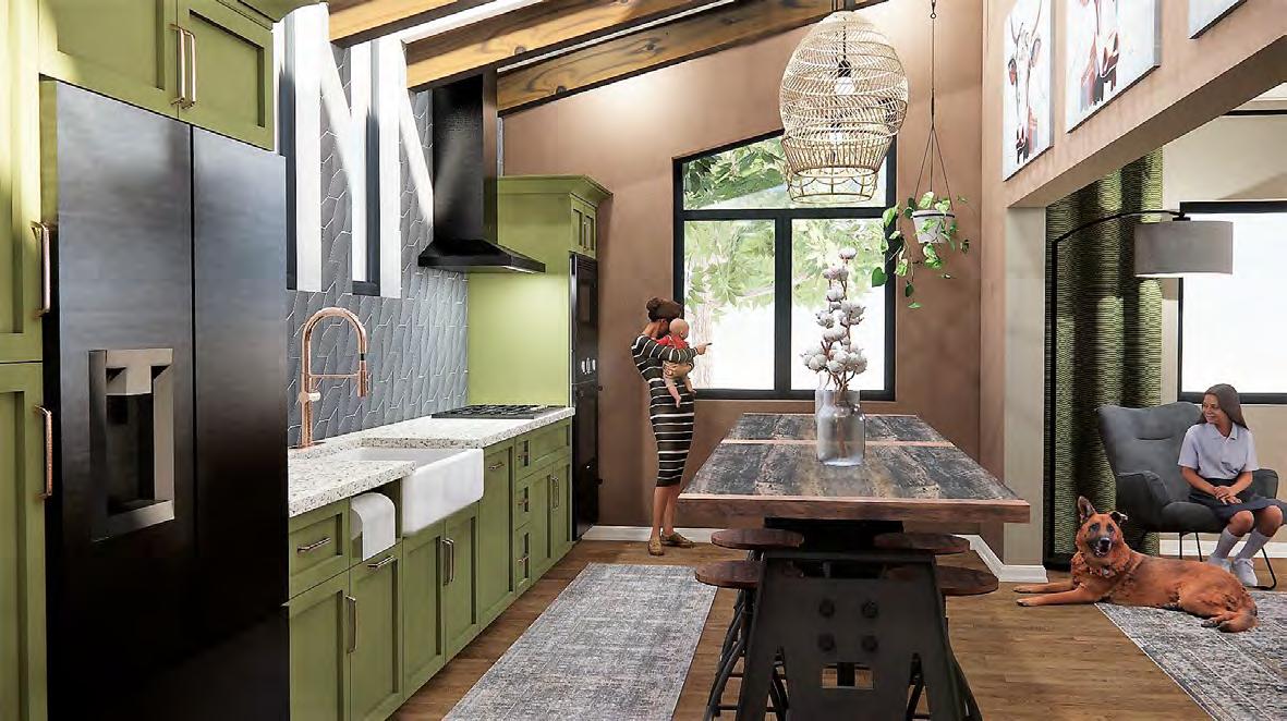 Inside-outsidedesign. The color palette “Nature’s Beauty” was chosen to solidify the project’s connection toearth and to create an environment of comfort and creativity With anappreciation for nature, the collection offers clean,simple and refined hues that invite the user to stay. The bond is Art and Craft (DET682), an eternal color reminiscent of a chocolate diamond. As an essential componentof the design, Artand Craft (DET682) connects past to now, earthto air, craft to art. Because of it, the space is transformed: itfills the home with anintricacy that expresses order andintrigue.
