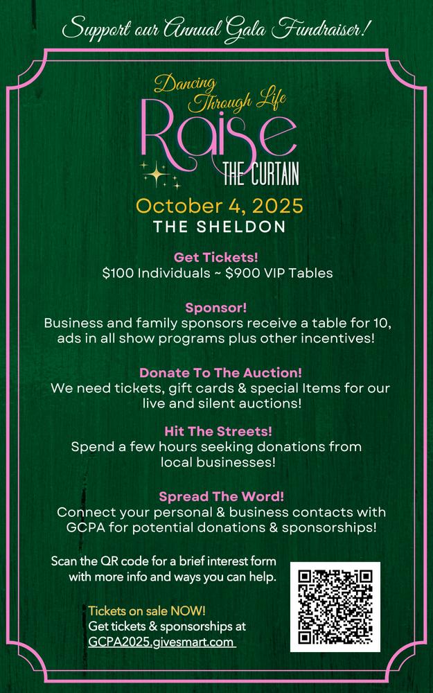 As we embark on this celebratory season, we extend our heartfelt gratitude to our patrons, supporters, and the talented casts and crews who make GCPA a beacon of creativity. Here’s to a season filled with unforgettable moments, laughter that echoes through the halls, and the experience only live theater can provide. Welcome to a decade of dreams, drama, and dazzling performances at GCPA! If you like what you see, please consider joining us on our mission to provide quality, challenging, and out-of-the-box theatre for STL youth. See our shows, take our classes, spread the word, volunteer, or donate. We’d love your story with GCPA to begin today. ox