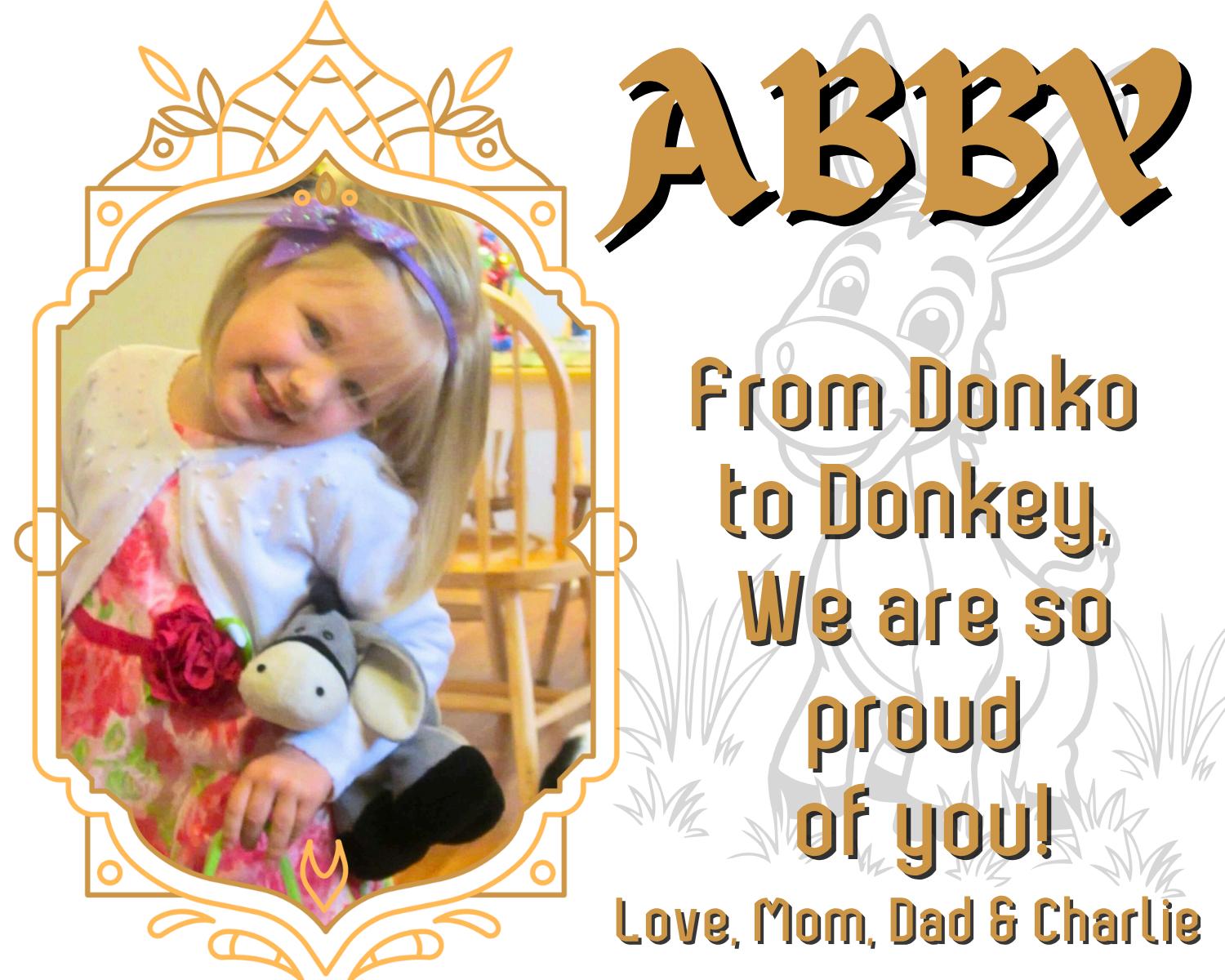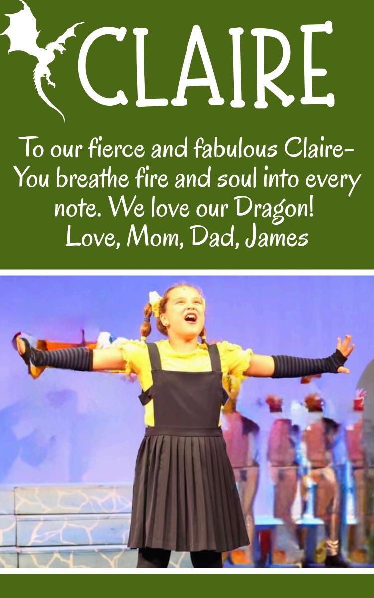 FIONA Olivia Loosemore, DONKEY Levi Money, FARQUAAD Liam Lucey, DRAGON Mia Battaglia, PINOCCHIO Liana Ebel, GINGY Lilly Smoot,