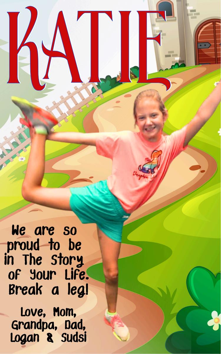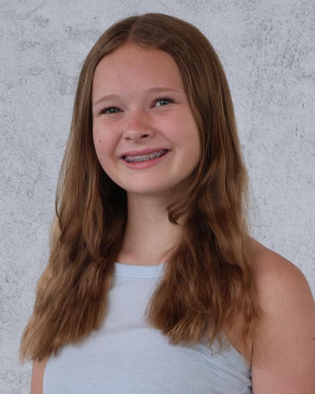 Kathryn Pierce (Gingy) is so excited to perform with so many best friends! She is a rising 8th grader Earlier this summer she was in Hello, Dolly! with Shooting Star Productions. Her favorite past role is Elle Woods in Raise Your Voice, Jr with Ignite Theatre Company. Kathryn is also a threeyear member of GCPA’s Show Starters and two-year member of Lindbergh’s awardwinning Synchronicity Show Choir, both of which have provided her leadership opportunities When she’s not performing, she enjoys lacrosse, cross country/track, robotics, piano, clarinet, Book Battle, and has won state medals for Science Olympiad She’d like to thank her familyeven her three older siblings who always tell her to stop singing.