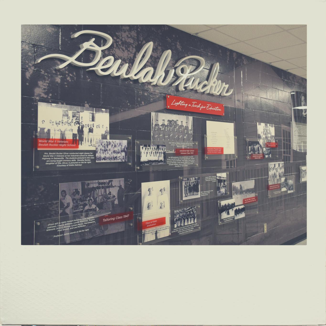 The Advanced Studies Center at Gainesville High School features an installation highlighting the history of the Industrial School, “Lighting a Torch for Education.” The hallway was dedicated in 2022 and is open for guests who would like to visit and view the photographs and memories. To learn more about the Industrial School and the transformative work of Beulah Rucker Oliver, visit www.beulahrucker.org and make plans to visit the Beulah Rucker Museum on Athens street where the original school house still stands today.