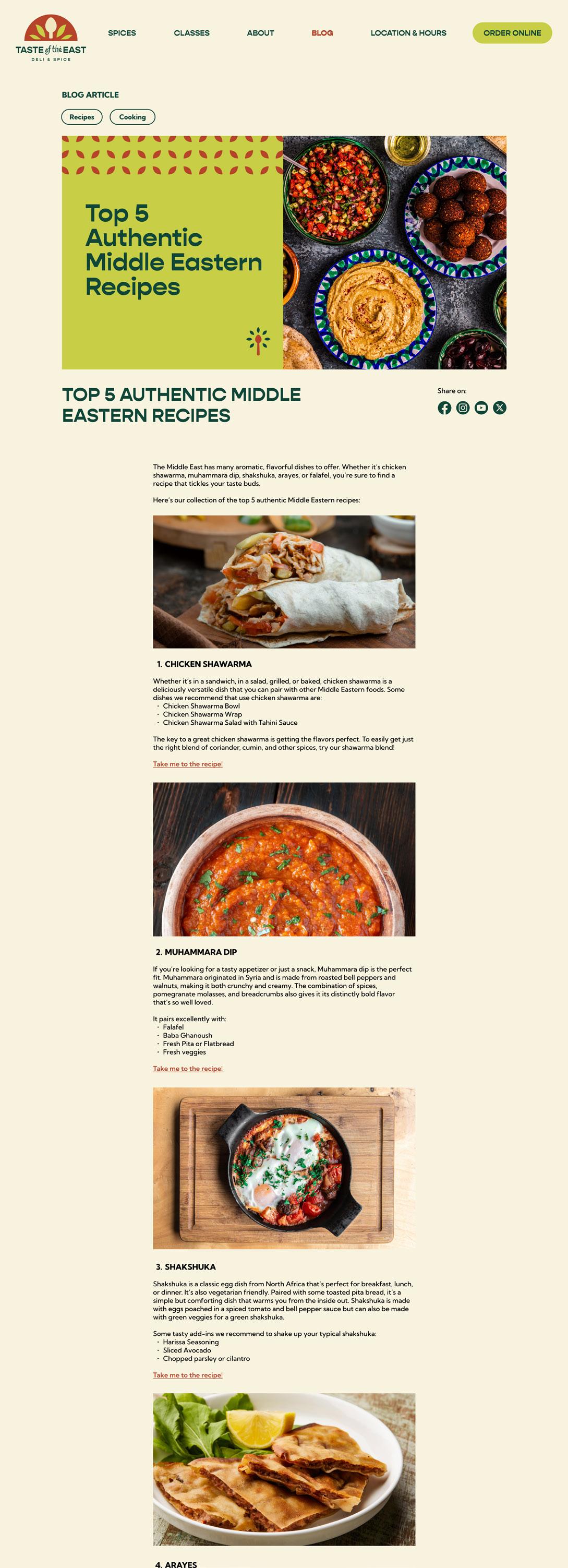 Taste of the East is a Middle Eastern deli and spice business that required a full brand identity, marketing strategy, and marketing materials. This hypothetical restaurant desired to expand into selling spice products and offering cooking classes, so the campaign needed to increase awareness and generate sales.