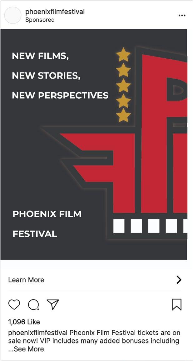 Phoenix Film Festival is a yearly event for film makers and film lovers alike. I designed branding for the 2024 Film Festival, including a VIP package for VIP ticket holders. I designed social media advertisements for the event as well.