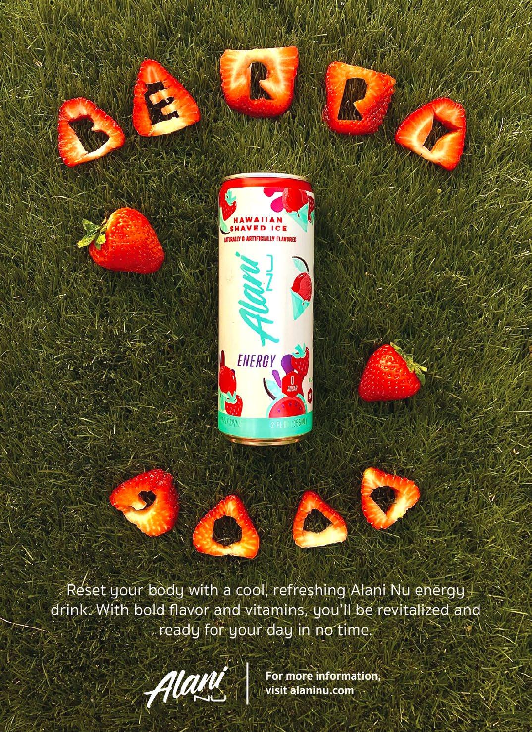 This campaign was created by Alani Nu in order to create unique advertising assets to bring in more sales for their energy drinks. As the graphic designer, I decided to use unique typography to create attention-grabbing print and social media advertisements. Keeping Alani Nu’s branding in mind, I used bright colors and fruit to fit their youthful, feminine feel.