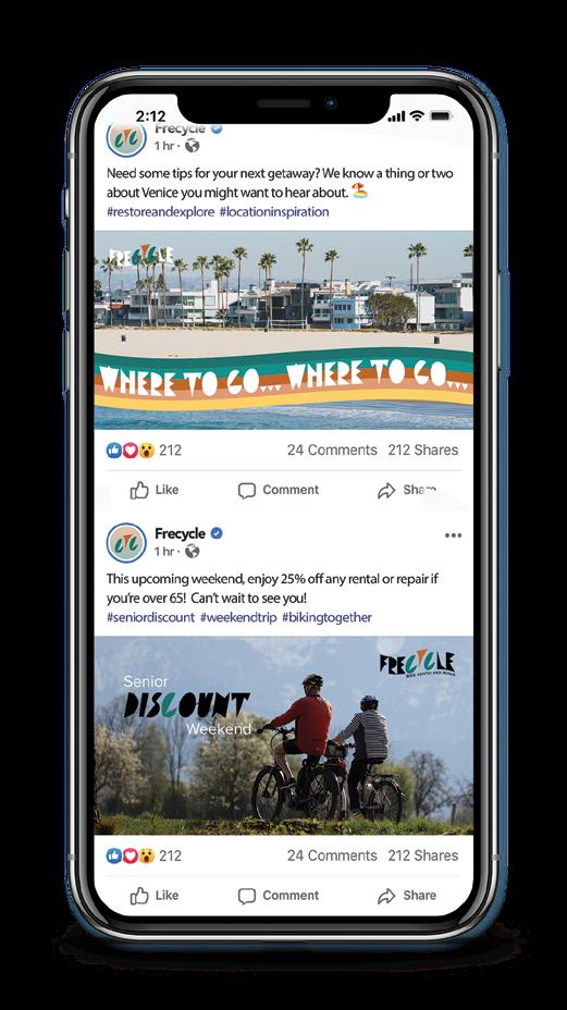 Frecycle is a brand that was developed from the ground up. I was given the type of business it was and where it is located. In this case, Frecycle is a bicycle rental and repair shop on Venice Beach. A complete brand guide was developed including a logo, patterns, typography, colors, and visual style. I focused on the recycling aspect and tied that to the branding, along with a vintage style to fit with the target markets, to compliment the culture of Venice Beach. Marketing collateral was designed for Instagram, Facebook, Pinterest, Youtube, along with emails, blogs, a social media calendar and a website.