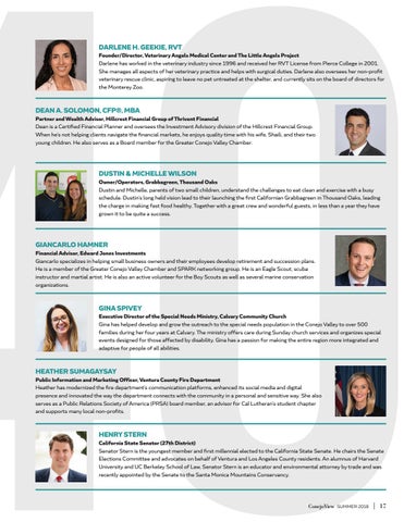 HENRY STERN California State Senator (27th District) Senator Stern is the youngest member and first millennial elected to the California State Senate. He chairs the Senate Elections Committee and advocates on behalf of Ventura and Los Angeles County residents. An alumnus of Harvard University and UC Berkeley School of Law, Senator Stern is an educator and environmental attorney by trade and was recently appointed by the Senate to the Santa Monica Mountains Conservancy.