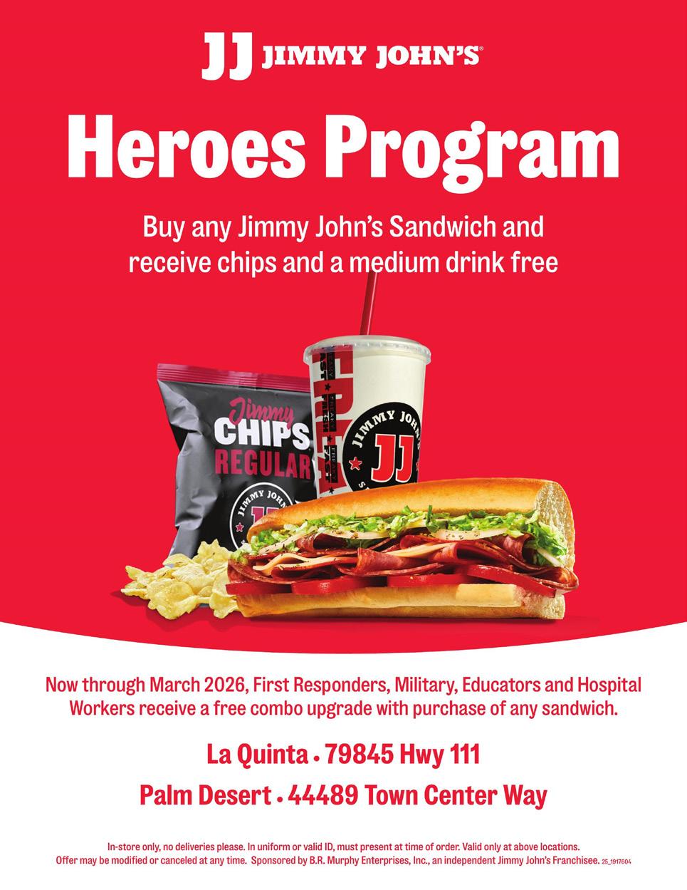 To learn more about Jimmy John’s La Quinta and Palm Desert, visit www. jimmyjohns.com or contact your local Jimmy John’s store.