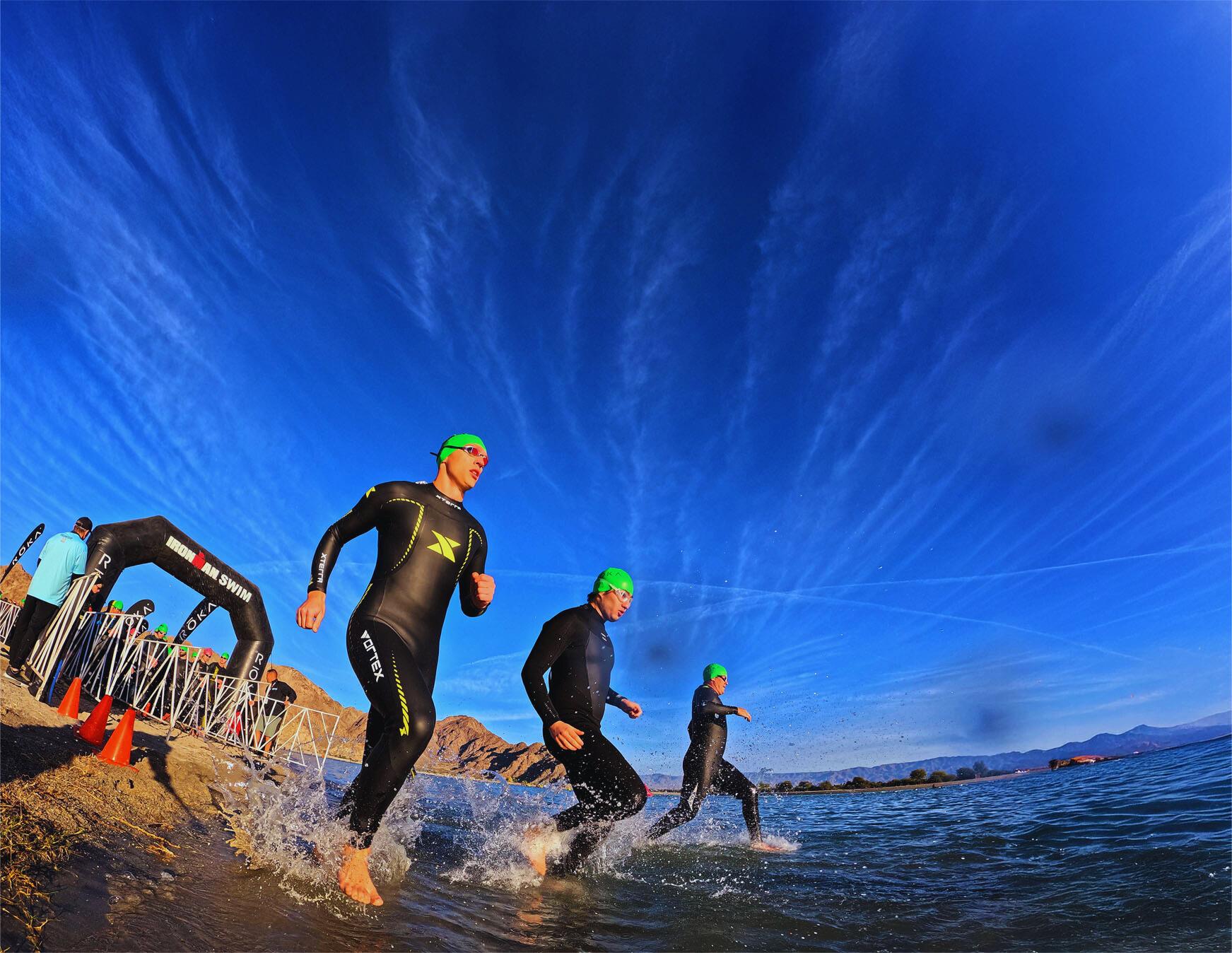 The race takes place from 7 a.m. to about 3:30 p.m., starting with a 1.2-mile swim at Lake Cahuilla followed by a 56.3-mile bike route out to the Thermal Club racetrack and back to La Quinta into SilverRock.