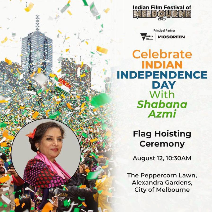 The veteran star and recipient of five National Film Awards, will have the esteemed privilege of hoisting the Indian flag at the Indian Film Festival of Melbourne (IFFM) on August 12, in Honor of the Independence Day weekend. The festival, running from August 11 to 20, promises to showcase the diversity and creativity of Indian cinema to global audiences. Shabana Azmi expressed her delight at being part of the prestigious event, especially with her film, "Ghoomer," directed by R Balki, making its world premiere at the festival. Her presence at IFFM 2023 signifies the celebration of cultural unity and artistic brilliance in Indian cinema.