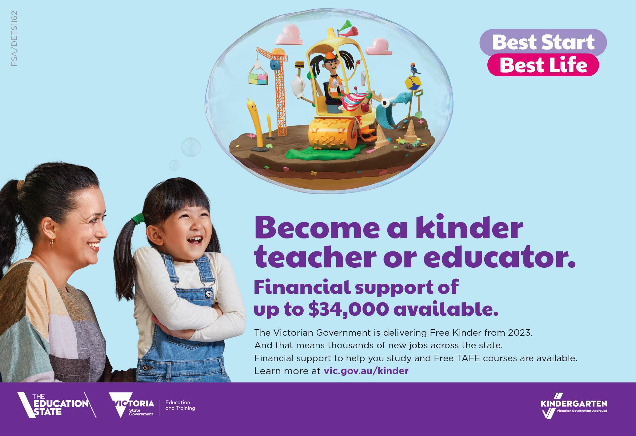 To find out more about kindergarten and how to enrol, visit vic.gov.au/kinder or contact your local council.