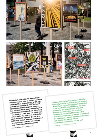 schreklig) g mal sehr a (s le ib rr signer n is te German de y b “My Germa rs te s o ful liked the p It is beauti . t) ig d e rl but I really E ist been ck (Nichts signer has e d Klaus Stae d n a r e own this lawy to see how ment’ in his h s li b ta s e g ‘the eing a challengin ve way. I (b ti a c o v ro p that nd the posters hilarious a d e k li y ll ia emen of espec e four hors th s marketer) a s d n ome ral big bra at poster h th k o to show seve y tl pse. I secre the Apocaly l, if Klaus the festiva r e ft me.” a e m with e can sue h t a th f o prove doesn’t ap N UN IC AT IO KE TI NG EN // M AR NI EK NE LL