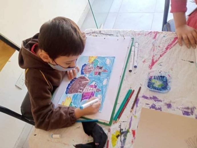 Trinidad pintando el cuadro que es arte de tapa de este número de Revista Literarte Infantil Juvenil