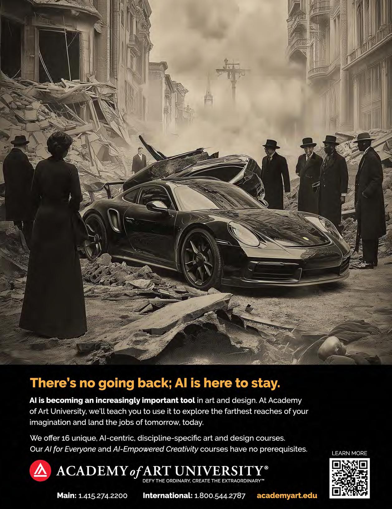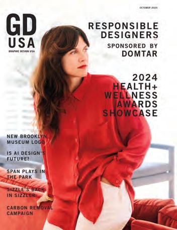 GDUSA - Graphic Design USA Volume 61 / No. 5 September/October 2024 Kaye Publishing Corporation (ISSN0274-7499/USPS227020). Published 6 times a year with combined issues in January/February, March/April, May/June, July/August, September/October, November/December. Executive, editorial and advertising offices at 594 Dean Street, Ste. 22, Brooklyn NY 11238. Phone: 201.305.9769 Website: www.gdusa.com. SUBSCRIPTION: Domestic, $72 one year. International, $140 one year. Periodicals postage paid at New York NY and additional mailing office. POSTMASTER: Send address changes to GDUSA - Graphic Design USA, PO Box 3072, Langhorne PA 19047. Permit #224.