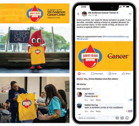 Design Firm: The University of Texas MD Anderson Cancer Center Client: MD Anderson Community Alliances Title: MD Anderson Summer Blood Drive Creative Director: Elisa Cisneros Art Director: Jasmine Raziuddin Designer: Daron Bourne Photographer: Mark Mulligan Associate Director: Erin McCormick Designer: Justin Carrier Director: Laura Nathan-Garner Program Manager: Heather Alexander Dahl Program Manager: Sarah Zizinia Program Manager: Shelly Schultz Director: Marisa Mir Executive Director: Stephanie Kim