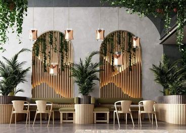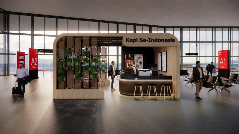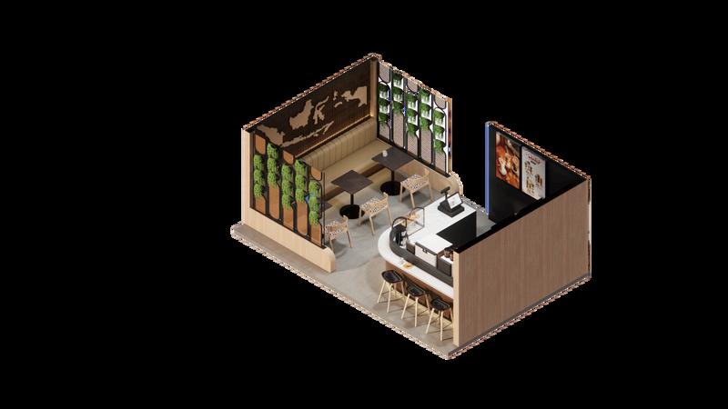 Perancangan interior booth retail coffeeshop Kopi Seindonesia den modern heritage of indonesia dengan mengusung budaya khas nus didukung dengan gaya modern scandinavian sehingga dapat memberika sederhana, natural, hangat, dan cozy. beberapa sentuhan konten lo berupa material seperti rattan, dapat juga berupa motif batik yang men kursi, dan lain-lainnya.