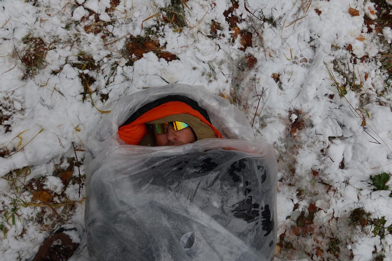SHELTER- Tiny Tent, Bivvy Sac, Large Trash bag, Space Blanket