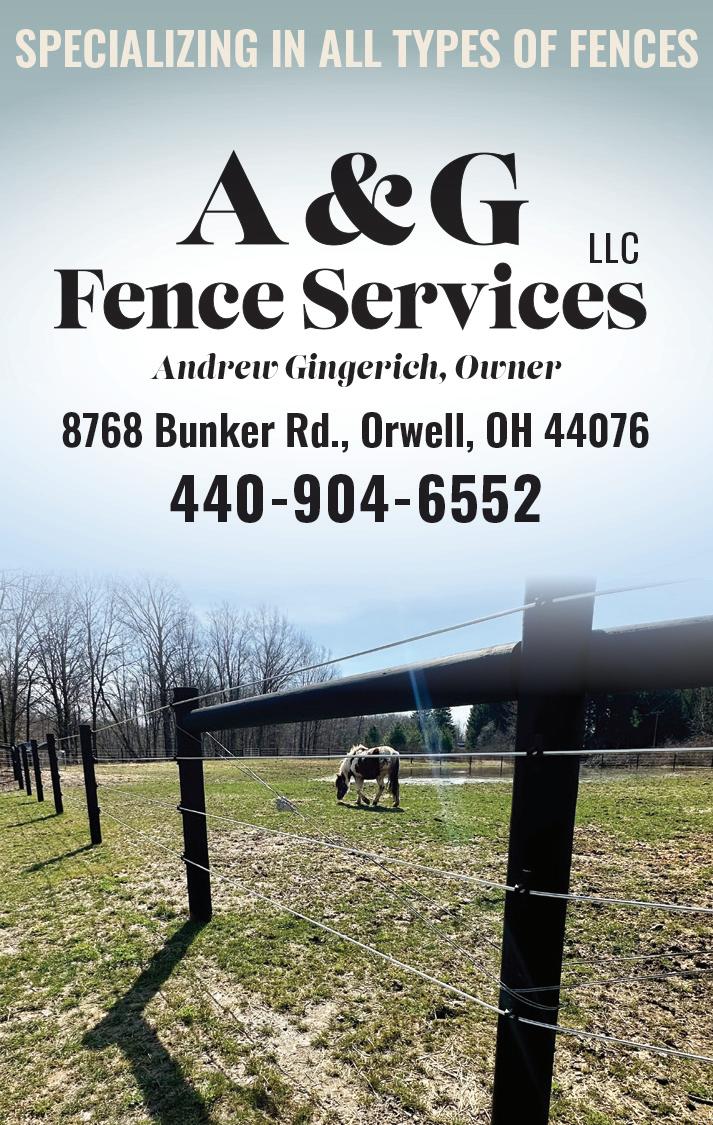 A & G Fence Services LLC Andrew Gingerich 8768 Bunker Rd. Orwell 440-904-6552 Complete Fencing & Construction LLC Allen E. Fisher 17681 Kinsman Rd. Middlefield 440-636-3212 FLOORING Fisher Flooring LLC Crist A. Fisher 16115 Nauvoo Rd. Middlefield 440-632-1957 Pleasant Valley Woodworking Lester Mullet & Andy Byler 13424 Clay St. Middlefield 440-636-5860