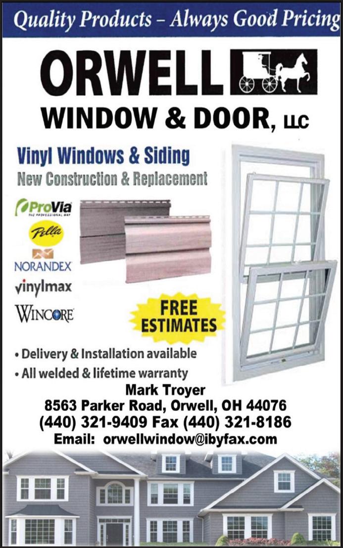 & S Produce Raymond & Sara Ann Byler 16936 Old State Rd. Middlefield 440-548-2676 Orwell Pantry Ervin & Emma Jane Miller 14 N. Maple St. Orwell 440-437-2035
