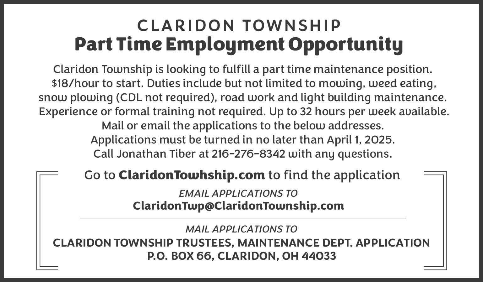 •Copyright © 2025 Geauga County Maple Leaf LLC. All rights reserved. Material published in Geauga County Maple Leaf is prepared at substantial expense and is for the sole and exclusive use of the subscriber. It may not be republished, resold, recorded or reused in any manner, in whole or part, without the publisher’s written consent. Any infringement will be subject to legal redress.