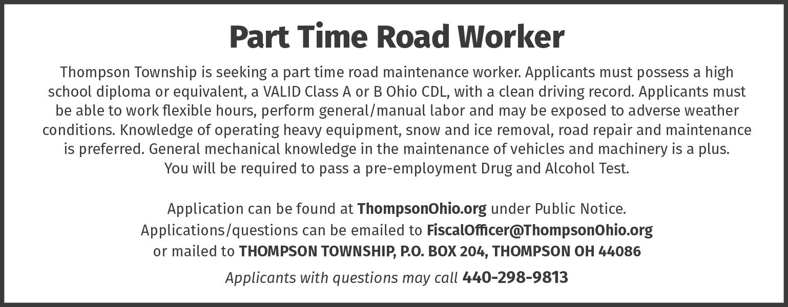Yard Worker wanted for Spring, Summer, Fall. Starting at $16/hr, cash daily, more with experience, driver’s license preferred. 440-338-3563. Russell address.