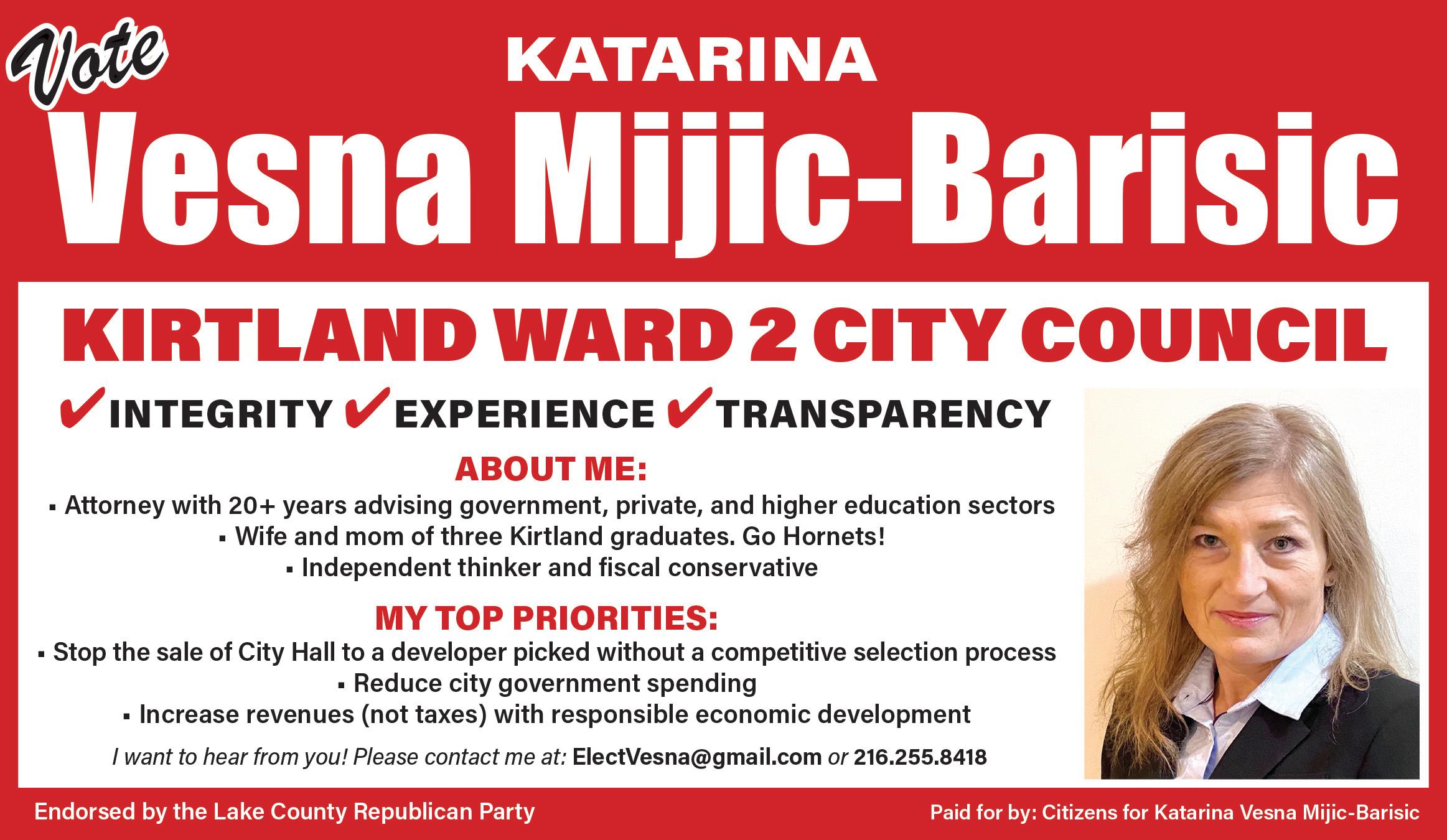 The local candidates this year are running for the offices of: Willoughby Municipal Court Judge; City of Kirtland Mayor; City of Kirtland Council Wards 1, 2, 3 and 4; and Kirtland Schools Board of Education. Sixteen (16) candidates have confirmed their attendance.