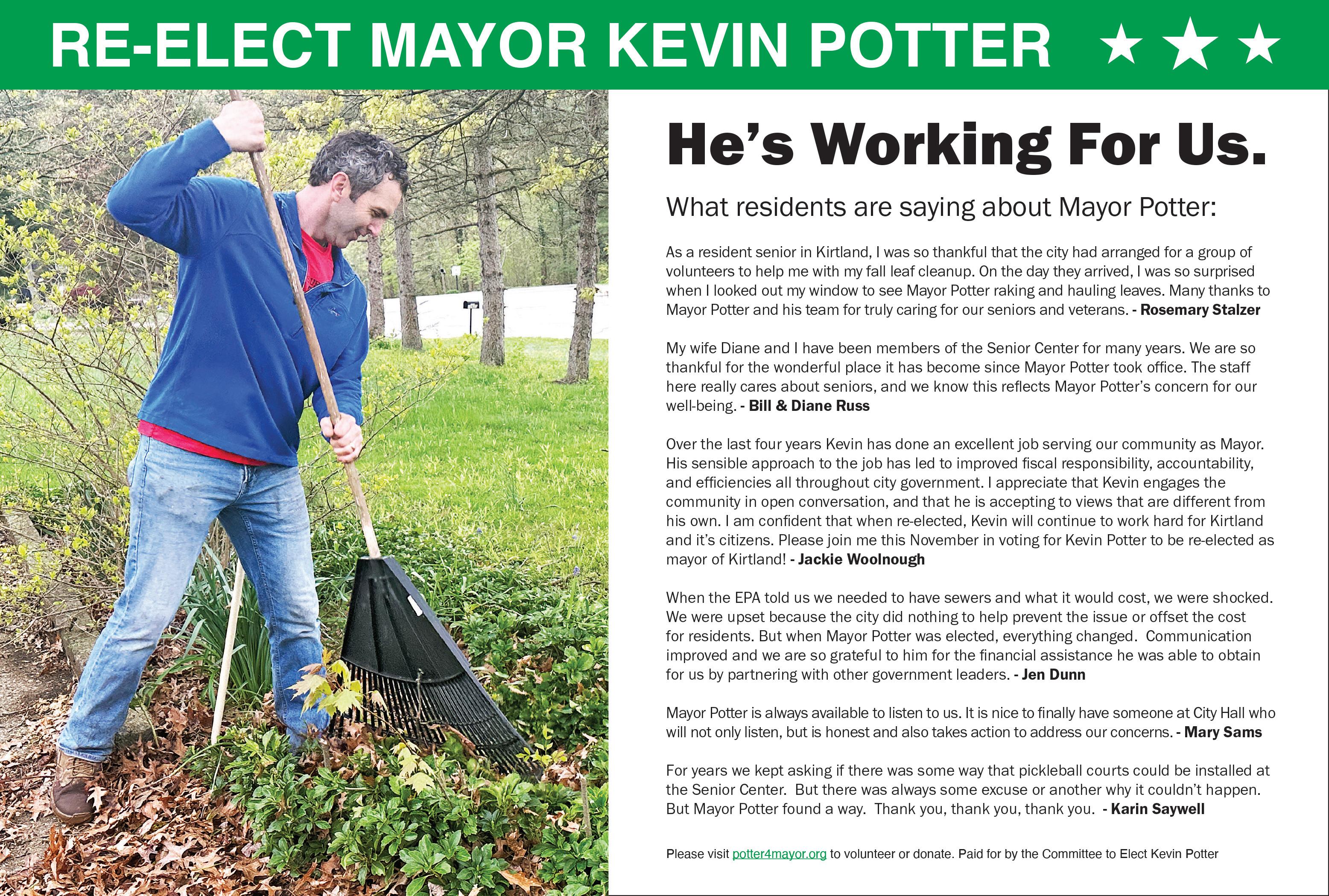 With just two months left in my first term as Kirtland’s Mayor, I think it’s important to reflect on the things we’ve been able to accomplish together and to look forward to a great future for Kirtland. Every day, I become more impressed by the spirit of the Kirtland community, and the intelligence of our voters to sift through some of the noise that comes during election season.