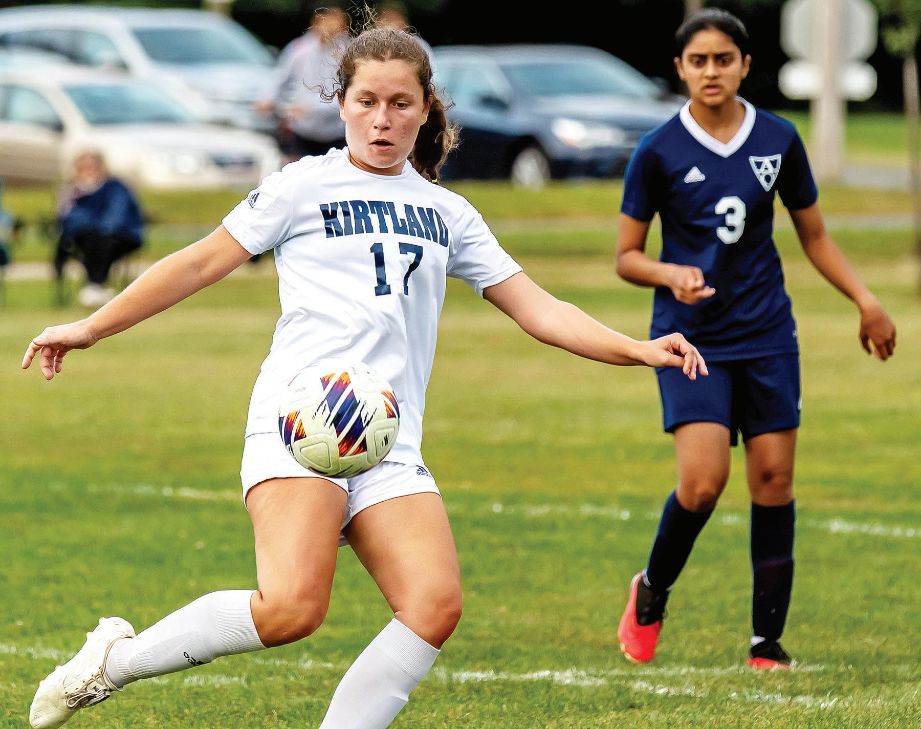 ALAN KORNSPAN/KMG Kirtland’s Clare Davidson against Andrews Osborne Academy in a draw. The team is 5-5-4 on the season.