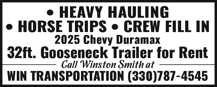 Part-time Farm Help Needed: Sat/Sun/Wed 8:30am11:30am. Clean and Bed 4 horse stalls. Refill hay nets. Turn out. Misc. other odd farm duties. Must pass background check. No smoking. 440-2567297.