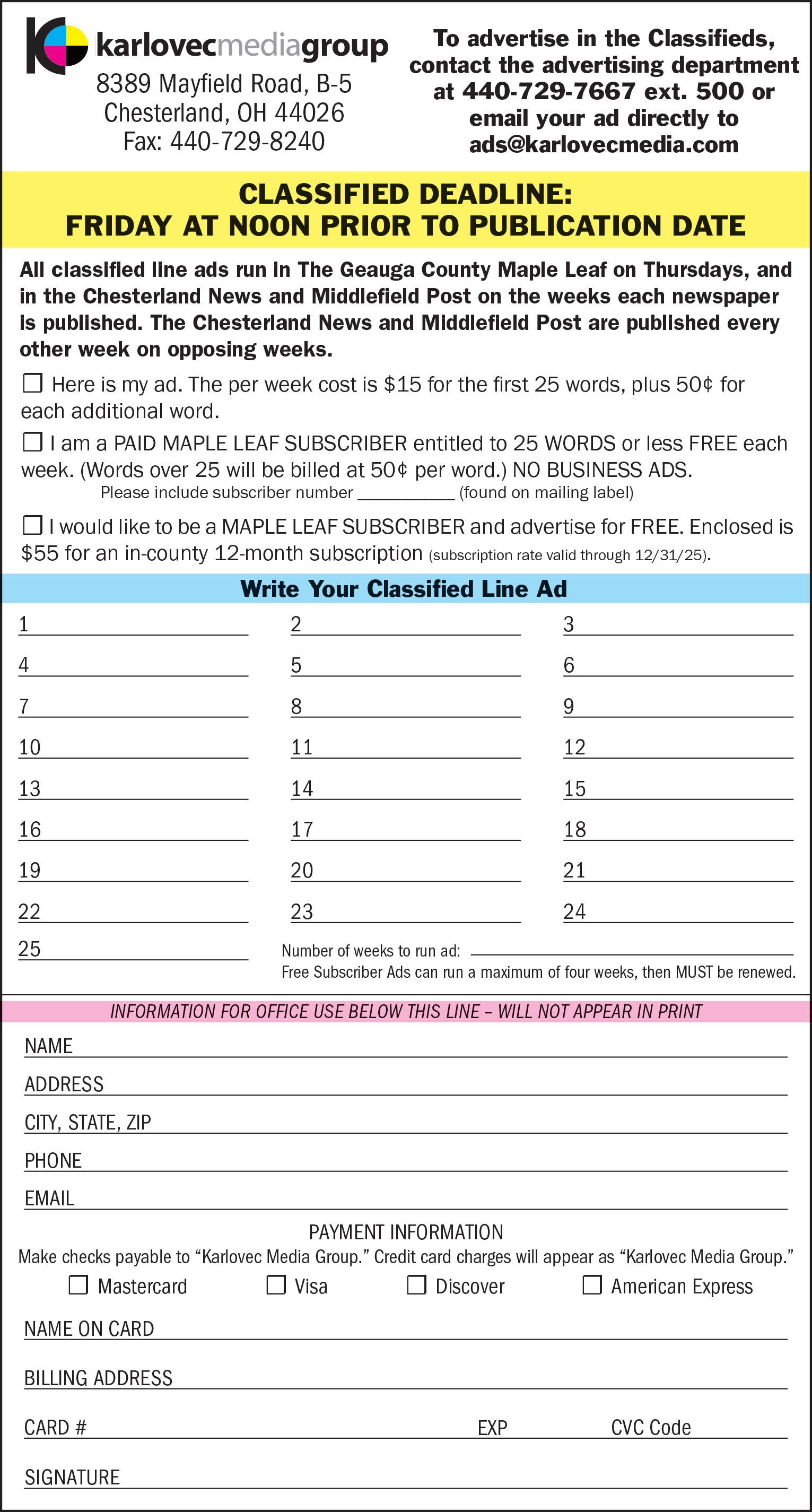 Applicants must bring recent energy bills, proof of income, proof of citizenship or legal residency for all household members and disability documentation, if applicable. Lifeline’s Energy Assistance Office is located at 8 N. State St., Suite 300, Painesville, with additional appointments available at the Wickliffe Family Resource Center on the second and fourth Tuesdays of each month.