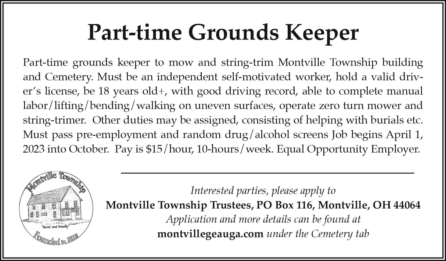 Middlefield Township: March 13, 7 p.m., Board of Trustees. All trustees meetings are held at Township Office, 15228 Madison Road, unless otherwise noted.