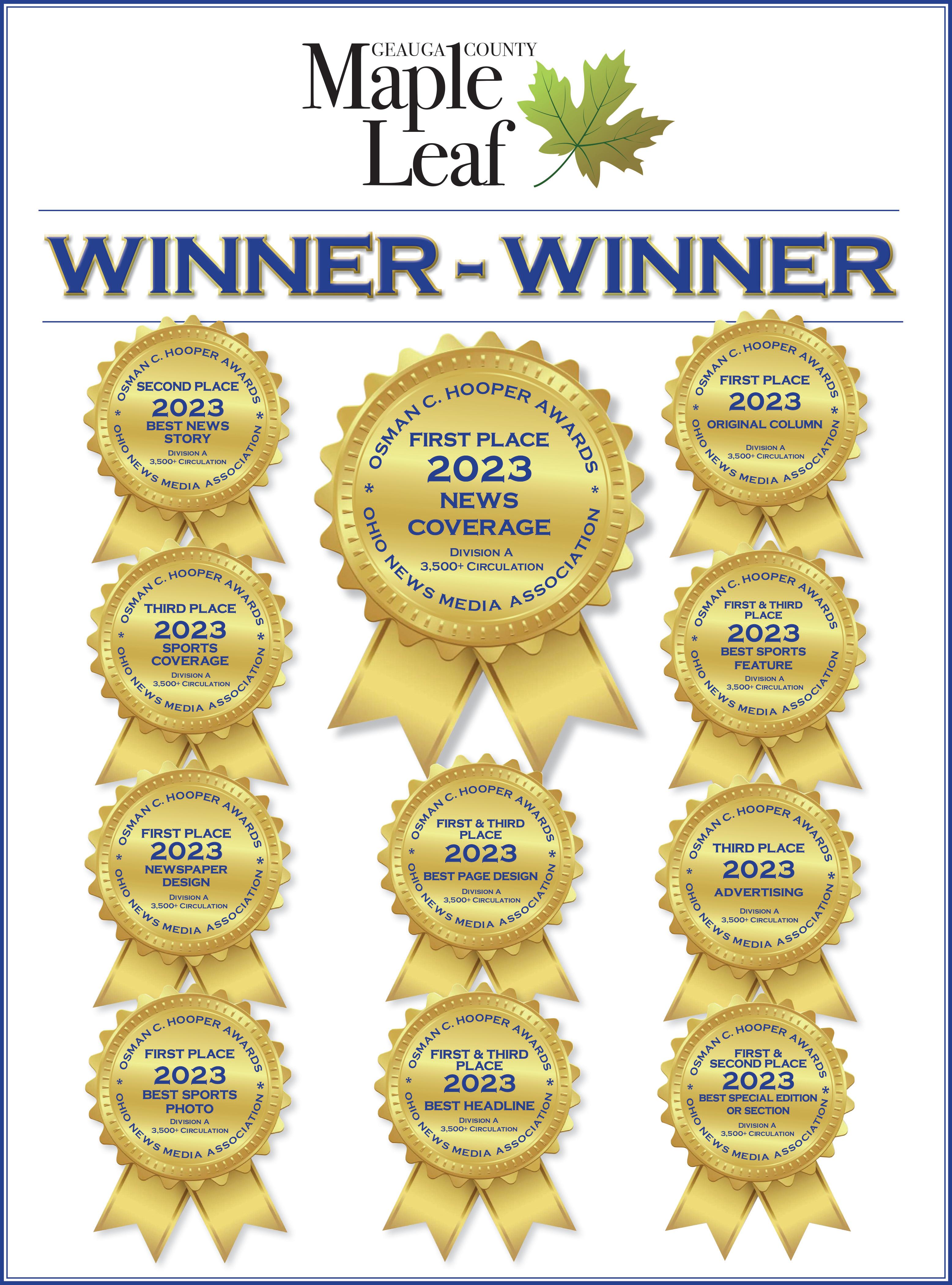 •Copyright © 2023 Geauga County Maple Leaf LLC. All rights reserved. Material published in Geauga County Maple Leaf is prepared at substantial expense and is for the sole and exclusive use of the subscriber. It may not be republished, resold, recorded or reused in any manner, in whole or part, without the publisher’s written consent. Any infringement will be subject to legal redress.