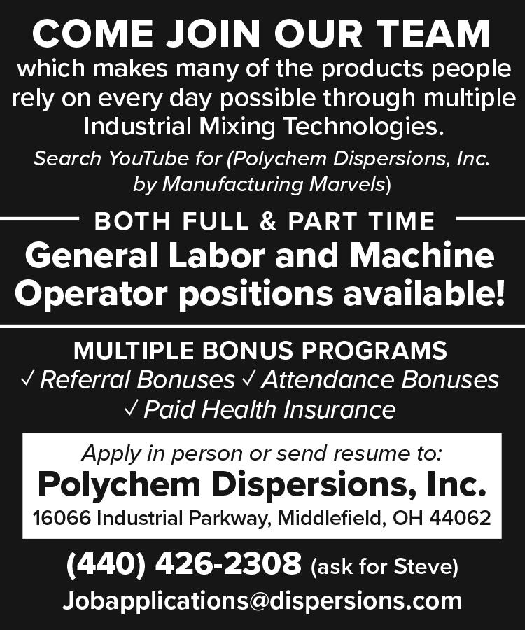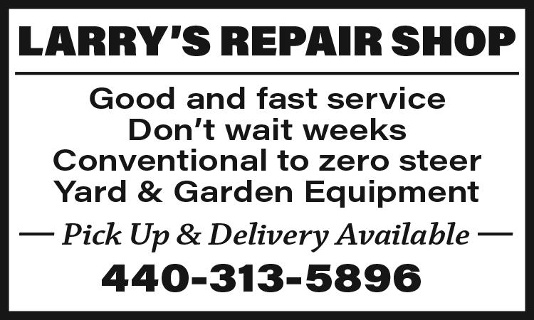 Taxi Service: 4 passengers only, for cleaning crews, short and long trips. Contact Lisa at 440-708-4835. Albert’s Complete Tree Service: 45+yrs experience! Competent in all aspects of Arboriculture, Forestry and Land Clearing. Also, Firewood, Excavation and Sewer Work. Free Estimates. 440-687-5404.