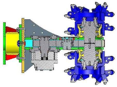 Spezialfräsen verfügen über ein ausserordentlich robustes Stirnradgetriebe, welches mit drehmomentstarken Hydraulikmotoren angetrieben wird. Dabei ist das Getriebe so robust ausgelegt, dass es selbst in härtesten Anwendungen mühelos eingesetzt werden kann.