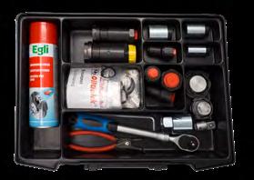 * inkl. XMB-Schmierkoffer mit Akku-Fettpresse, Akku-Ladegerät, Schmierfett-Kartuschen, Betriebsanleitung, Schmieranleitung, Messanschluss, Ventile, Verschlussschraube und diverse Werkzeuge