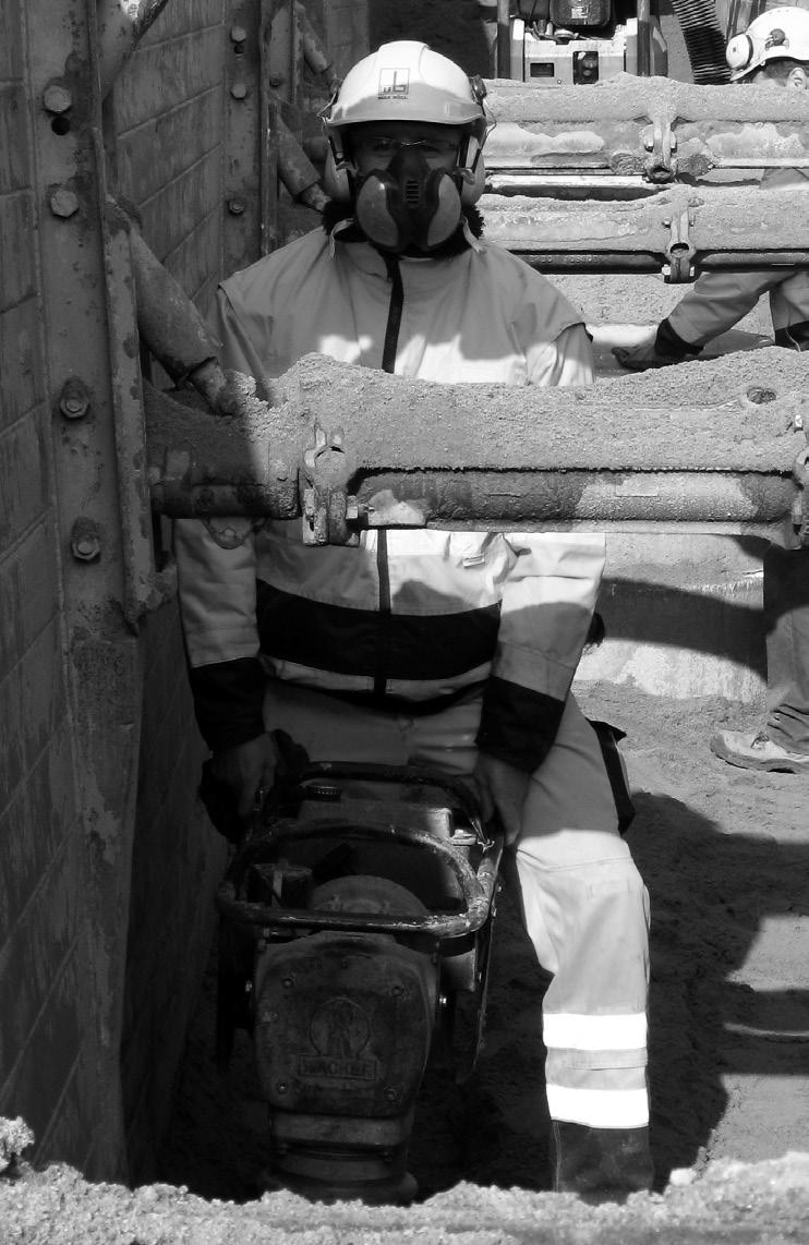 Ursprüngliche Arbeitsweise für die Verdichtung der Leitungszone mit handgeführtem Stampfer. Eingesetztes Personal, Gerät und Material: